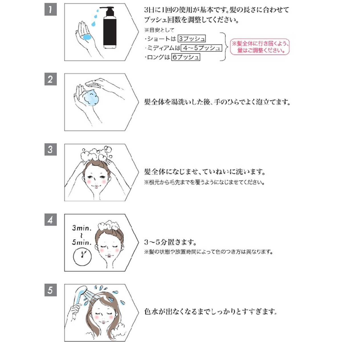 3日に1回程度、いつものシャンプーの代わりに使うことで、髪に色を補いカラーリングした髪色をキープします。